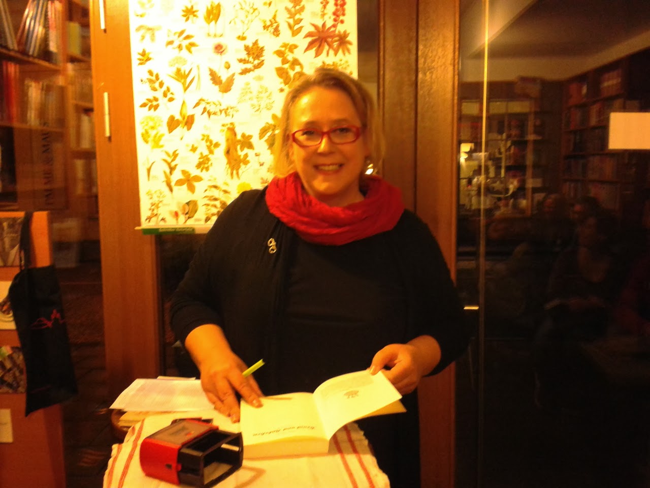 Buchpremiere Nr. 5 von Elke Pistor in der Buchhandlung Falderstraße in Köln-Sürth. In gemütlicher Runde stellte die fleissige Autorin ihren neuen Landkrimi Kraut & Rübchen vor.